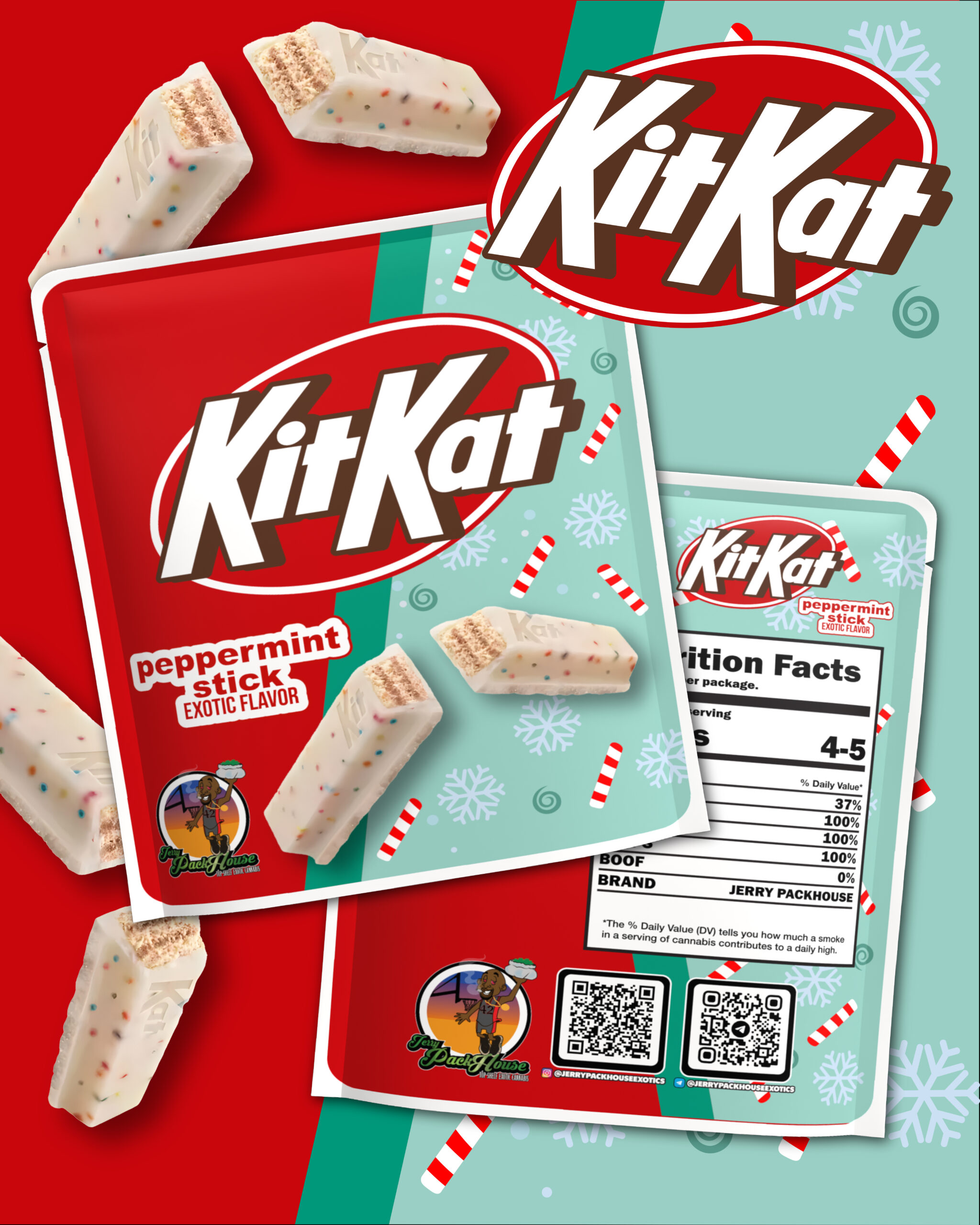 Step into a winter wonderland with Peppermint Stick, the limited-edition Jerry Packhouse exotic inspired by the classic creamy white-chocolate Kit Kat peppermint bars. This strain hits with a cool mint inhale, a sweet candy exhale, and a smooth, uplifting high that feels like breaking into a fresh peppermint stick straight out the pack.
